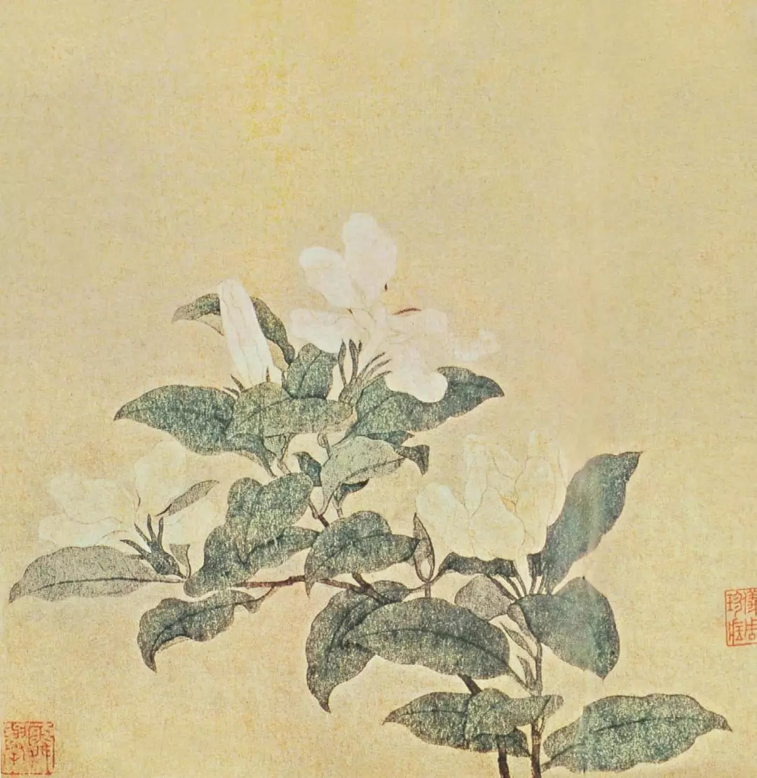 钱选大胆将市井元素纳入文人画体系。《画花篮图册》中,双钱纹提梁、吉祥富贵的牡丹与夜合花共处一篮,这种“俗艳”组合被赋予“招隐奚足言”的隐逸深意。他更在《来禽栀子花图卷》中,以栀子花的浓烈香气对应文人“静里春光”的审美追求,通过嗅觉通感打破雅俗界限。这种“以俗写雅”的策略,实则是对元代文人“身在市井,心寄山林”生存状态的隐喻。